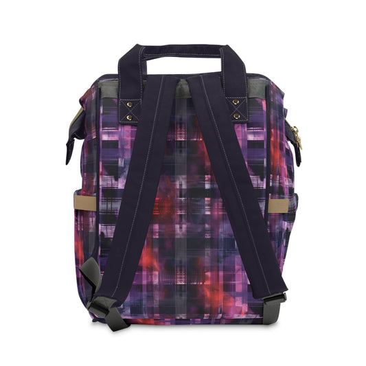 Cyberpunk Plaid in Bold Watercolor Flannel Pattern in Purple and Red Multifunctional Diaper Backpack