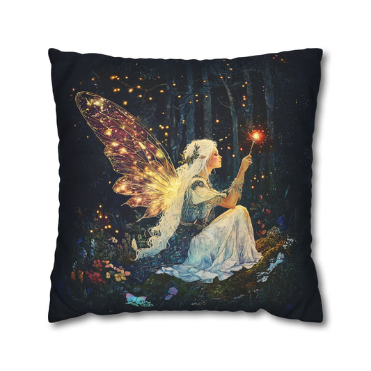 Ethereal Fairy with Glowing Wings Amidst Enchanted Forest Spun Polyester Square Pillowcase 4 Sizes