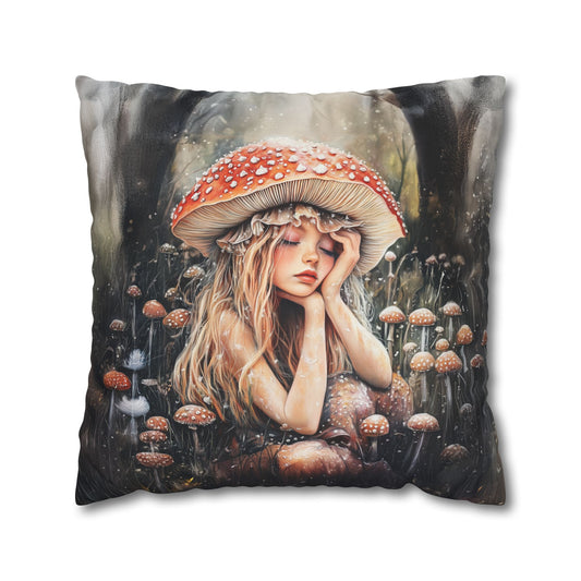 Woodland Nymph Slumbers Beneath a Mushroom's Shade Spun Polyester Square Pillowcase 4 Sizes