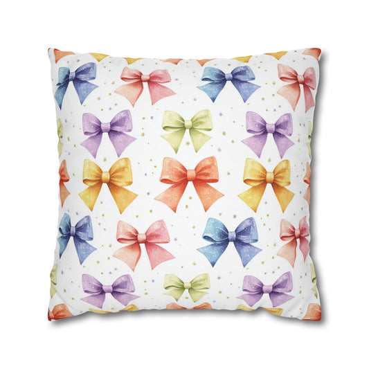 Pastel Watercolor Bows Sparkling Coquette Ribbons with Soft Colors Spun Polyester Square Pillowcase 4 Sizes