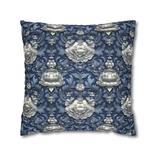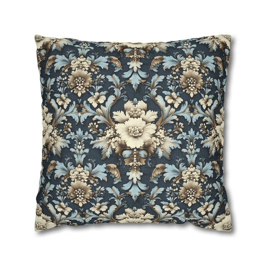 Rococo Floral – Intricate Blue & Ivory Baroque-Inspired Design Spun Polyester Square Pillowcase 4 Sizes