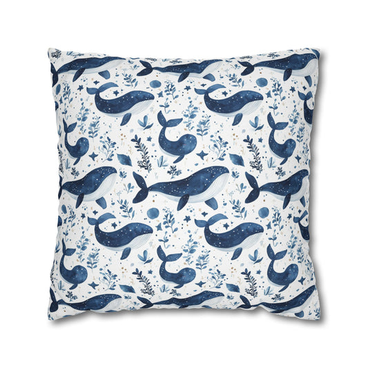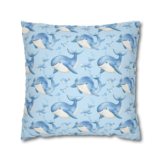 Adorable Blue Ocean Baby Whales Spun Polyester Square Pillowcase 4 Sizes