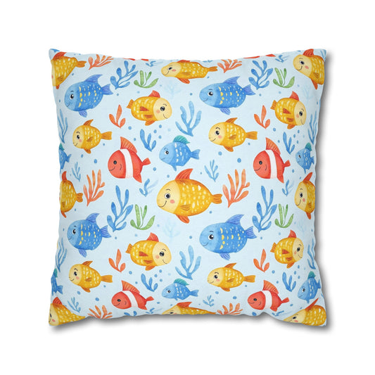 Ocean Friends Smiling Fish in a Colorful Underwater Scene Spun Polyester Square Pillowcase 4 Sizes