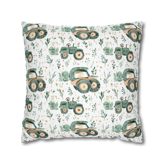 Rustic Farm Cute Green Tractors & Wildflowers Spun Polyester Square Pillowcase 4 Sizes