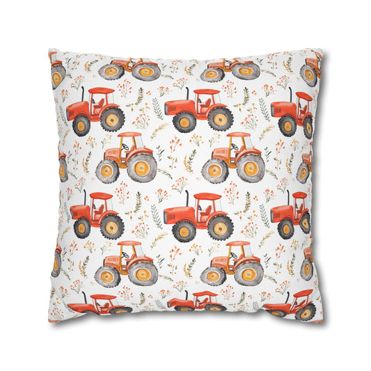 Rustic Farm Cute Red Tractors & Wildflowers Spun Polyester Square Pillowcase 4 Sizes