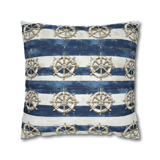 Rustic Ship Wheels on Weathered Blue and White Stripes Spun Polyester Square Pillowcase 4 Sizes