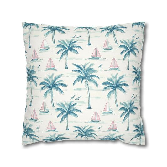 Pink Sailboats & Palm Trees on a Serene Sea Spun Polyester Square Pillowcase 4 Sizes