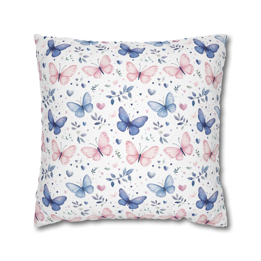 Fluttering Love Pastel Butterflies & Heart Accents in Soft Watercolors Spun Polyester Square Pillowcase 4 Sizes