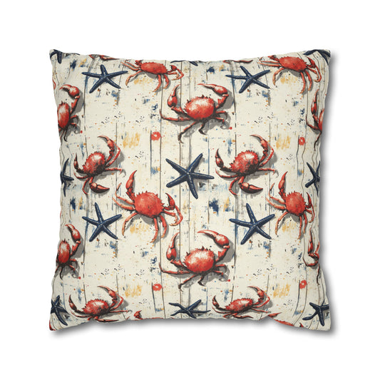 Red Crabs & Blue Starfish on Weathered Wood Planks Spun Polyester Square Pillowcase 4 Sizes