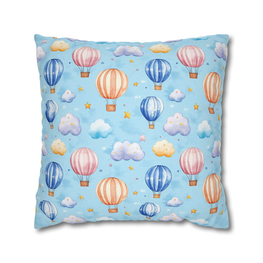 Dreamy Sky Voyage Hot Air Balloons, Fluffy Clouds & Twinkling Stars Spun Polyester Square Pillowcase 4 Sizes