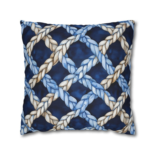 Intricate Nautical Rope Knots in Coastal Blues & Neutrals Spun Polyester Square Pillowcase 4 Sizes