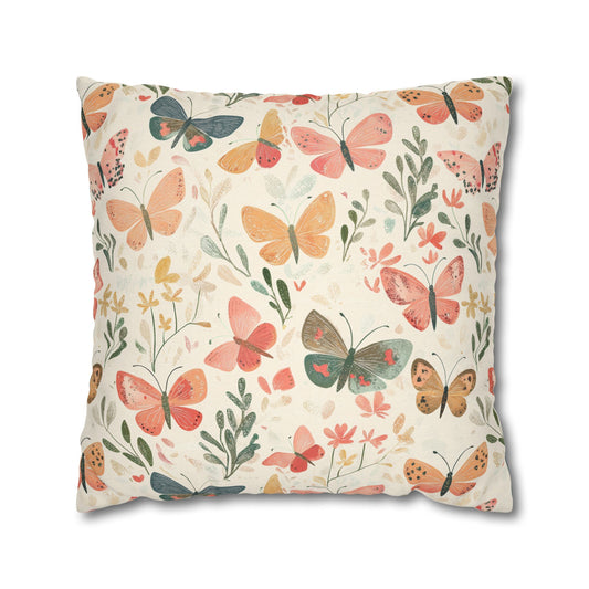 Vintage-Inspired Pastel Meadow Butterflies in Garden in Soft Earthy Tones Spun Polyester Square Pillowcase 4 Sizes