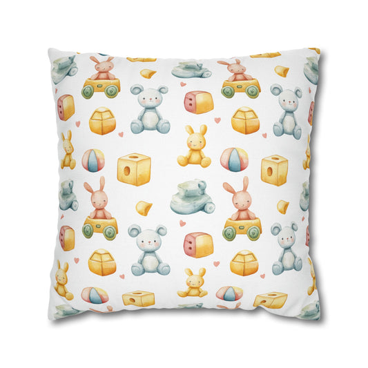 Sweet Playtime Bunny, Blocks & Toy Car Pattern Spun Polyester Square Pillowcase 4 Sizes