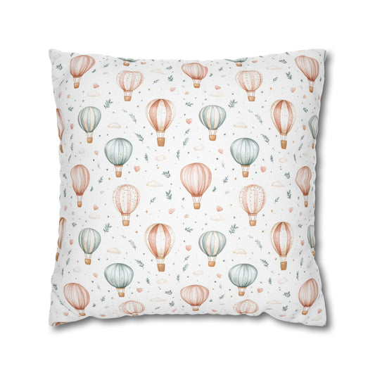 Pastel Hot Air Balloons with Floating Clouds & Hearts Spun Polyester Square Pillowcase 4 Sizes