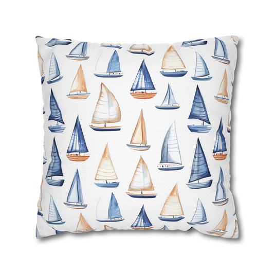 Watercolor Sailboats on a Breezy Ocean Spun Polyester Square Pillowcase 4 Sizes