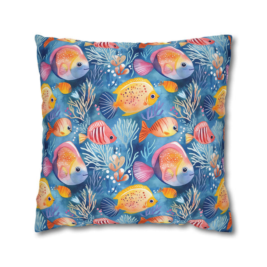 Tropical Fish Adventure Colorful Ocean Wonderland Spun Polyester Square Pillowcase 4 Sizes