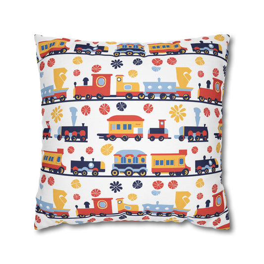 Retro Choo-Choo Toy Train Adventure Spun Polyester Square Pillowcase 4 Sizes