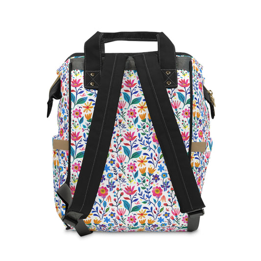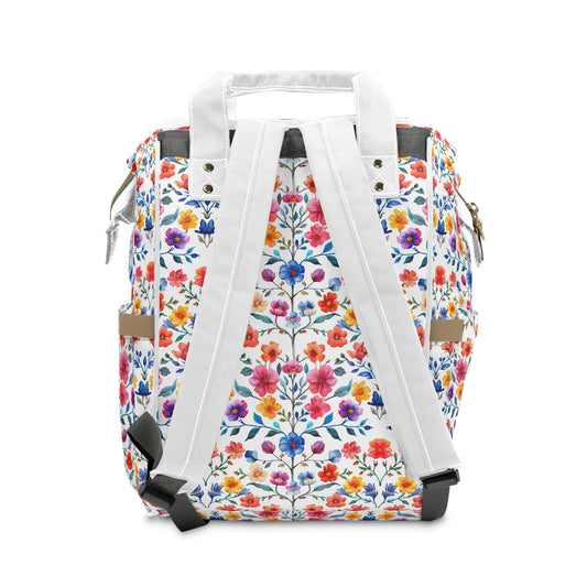 Botanical Symphony with Vibrant Watercolor Flowers Multifunctional Diaper Backpack