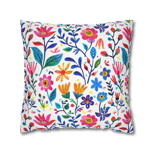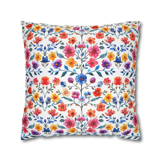 Botanical Symphony with Vibrant Watercolor Flowers Spun Polyester Square Pillowcase 4 Sizes