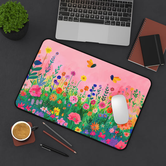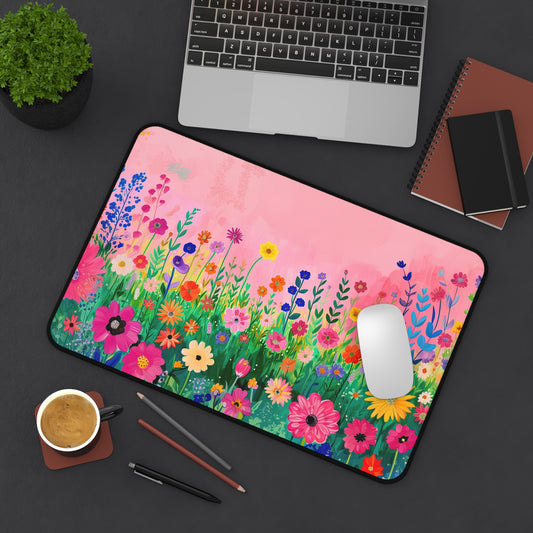 Blossoms in Bloom: Spring Wildflowers Against a Pink Background Theme Desk Mat Extended Gaming Mouse Pad - 3 Sizes