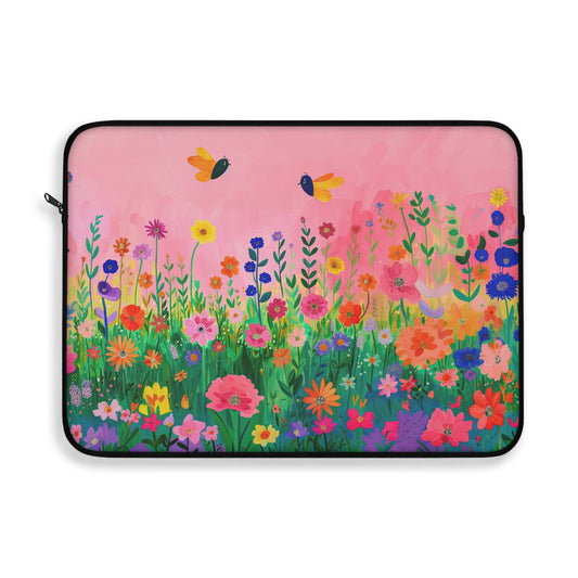 Blossoms in Bloom: Spring Wildflowers Against a Pink Background Laptop or Ipad Protective Sleeve 3 Sizes