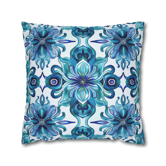 Blossom Symphony of Blue Teal Intricate Floral Pattern Spun Polyester Square Pillowcase 4 Sizes