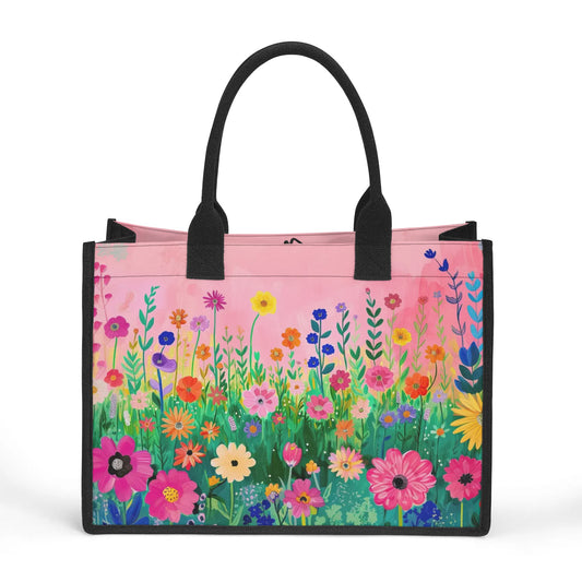 Blossoms in Bloom: Spring Wildflowers Against a Pink Background Structured Button Closure Canvas Tote Bag in 2 Sizes