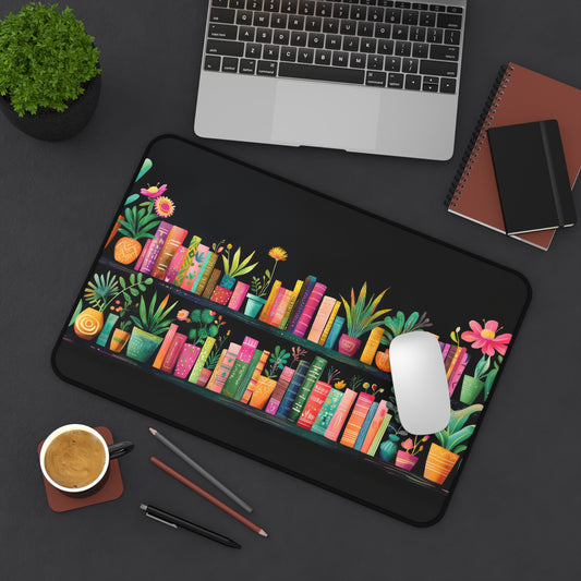 Botanical Bookshelf of Colorful Books and Plants Extended Gaming Mouse Pad Desk Mat - 3 Sizes