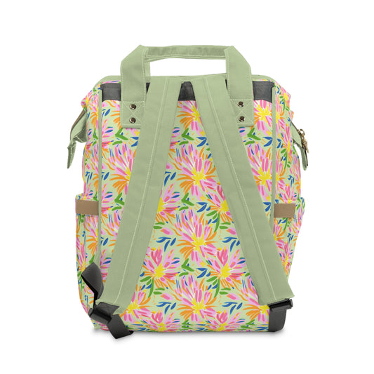 Blossoms in Bloom: Watercolor Pink and Yellow Flower Bursts Multifunctional Diaper Backpack