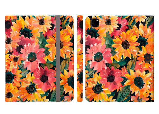 Vibrant Sunflower & Dahlia Autumn Bloom Symphony Ipad Pro 11 & Pro 12.9 Protective Case and Pencil Holder