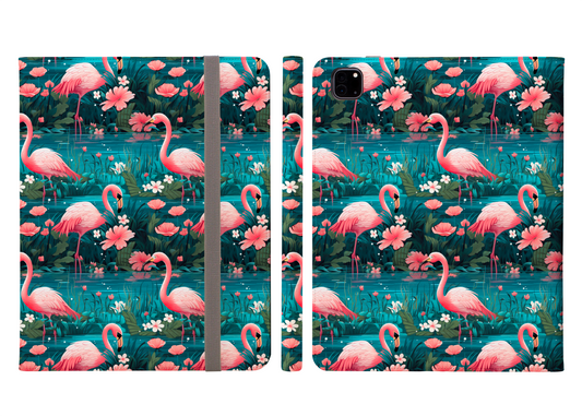 Enchanted Lagoon Graceful Flamingos in a Floral Paradise Ipad Pro 11 & Pro 12.9 Protective Case and Pencil Holder