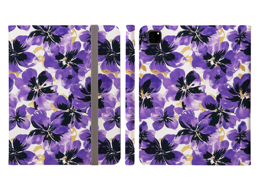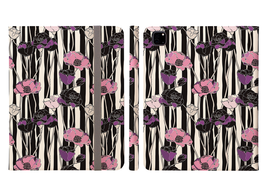 Bold Floral Elegance in Black & Purple Ipad Pro 11 & Pro 12.9 Protective Case and Pencil Holder