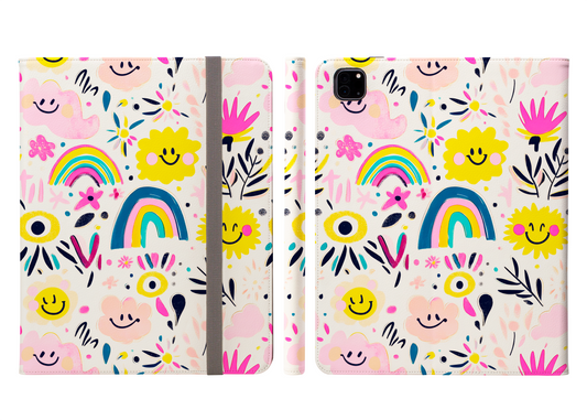 Retro Joy of Whimsical Smiling Flowers, Rainbows, and Playful Patterns Ipad Pro 11 & Pro 12.9 Protective Case and Pencil Holder