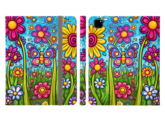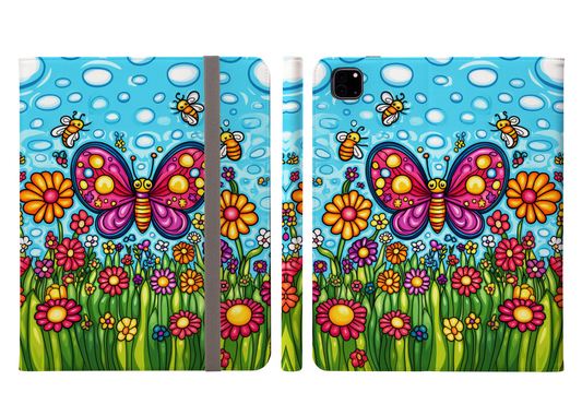 Butterfly Bliss with Bees and Blooming Flowers Ipad Pro 11 & Pro 12.9 Protective Case and Pencil Holder