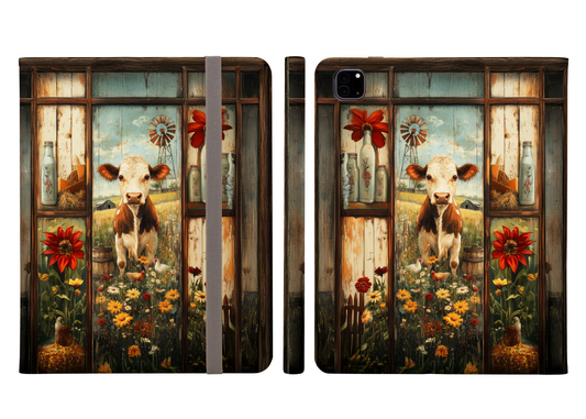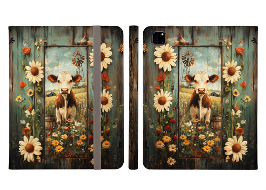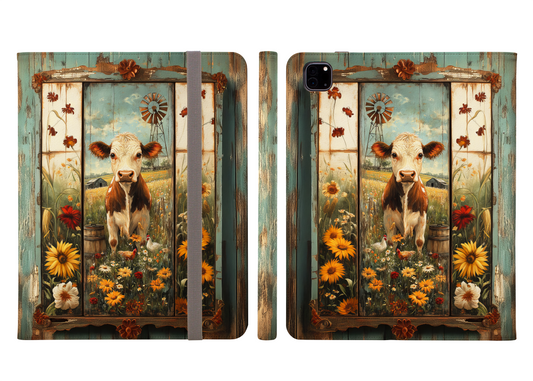 Farmhouse Collage of A Curious Cow, Rustic Windmill, and Wildflower Wonders Ipad Pro 11 & Pro 12.9 Protective Case and Pencil Holder
