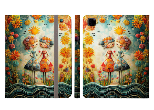 Sunlit Symphony Spiraling Whimsy of Friendship and Blooms Ipad Pro 11 & Pro 12.9 Protective Case and Pencil Holder