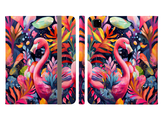 Vibrant Flamingo in a Jungle of Bold Colors and Leaves Ipad Pro 11 & Pro 12.9 Protective Case and Pencil Holder