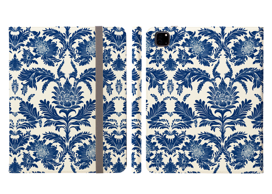 Indonesian Blue Floral Block Print Ipad Pro 11 & Pro 12.9 Protective Case and Pencil Holder