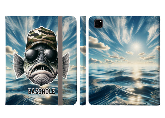 Basshole Camo Hat Wearing Bass Fish with Glasses Seamless i Ipad Pro 11 & Pro 12.9 Protective Case and Pencil Holder