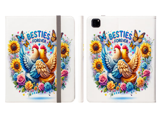 Besties Forever Chickens Best Friends Affirmation Quote, Cute Best Friend Ipad Pro 11 & Pro 12.9 Protective Case and Pencil Holder