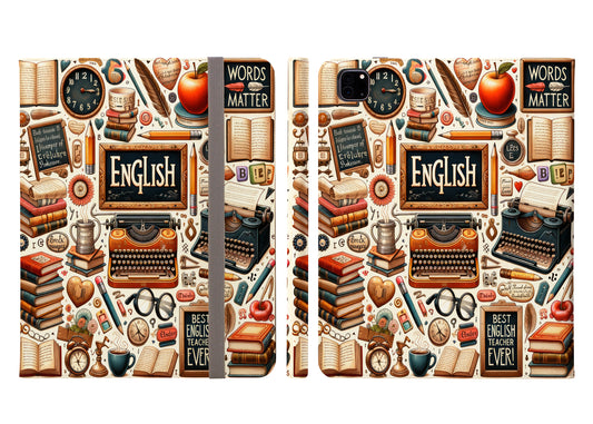 Teacher Life English Seamless Ipad Pro 11 & Pro 12.9 Protective Case and Pencil Holder
