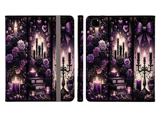 Dark Romance Books and Romantasy Bookish Deep Purple Flowers Seamless Ipad Pro 11 & Pro 12.9 Protective Case and Pencil Holder