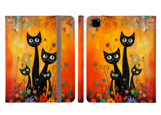 Playful Black Cats in a Vibrant Flower Garden Ipad Pro 11 & Pro 12.9 Protective Case and Pencil Holder