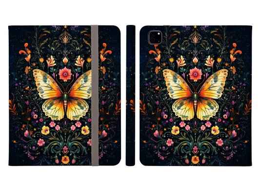 Enchanted Garden of Majestic Butterfly Amidst Midnight Blossoms Ipad Pro 11 & Pro 12.9 Protective Case and Pencil Holder