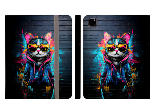 Cyber Neon Futuristic Cat in Graffiti Art Style Ipad Pro 11 & Pro 12.9 Protective Case and Pencil Holder