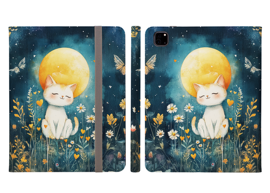 Whimsical Kitten with Golden Moonlit Serenity Ipad Pro 11 & Pro 12.9 Protective Case and Pencil Holder