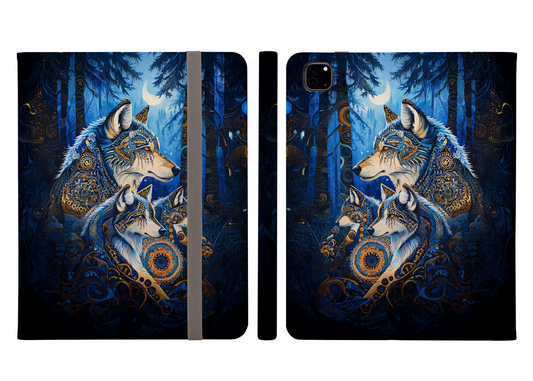 Mystic Guardians of Tribal Wolves of the Moonlit Forest Ipad Pro 11 & Pro 12.9 Protective Case and Pencil Holder