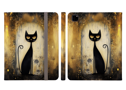 Mystique Regal Black Feline with a Golden Gaze Ipad Pro 11 & Pro 12.9 Protective Case and Pencil Holder