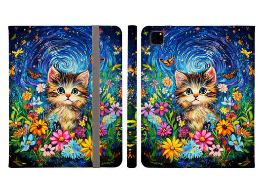 Whimsical Kitten Amidst a Van Gogh-Inspired Floral Fantasy Ipad Pro 11 & Pro 12.9 Protective Case and Pencil Holder
