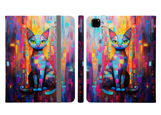Vibrant Patchwork Abstract Cat Ipad Pro 11 & Pro 12.9 Protective Case and Pencil Holder
